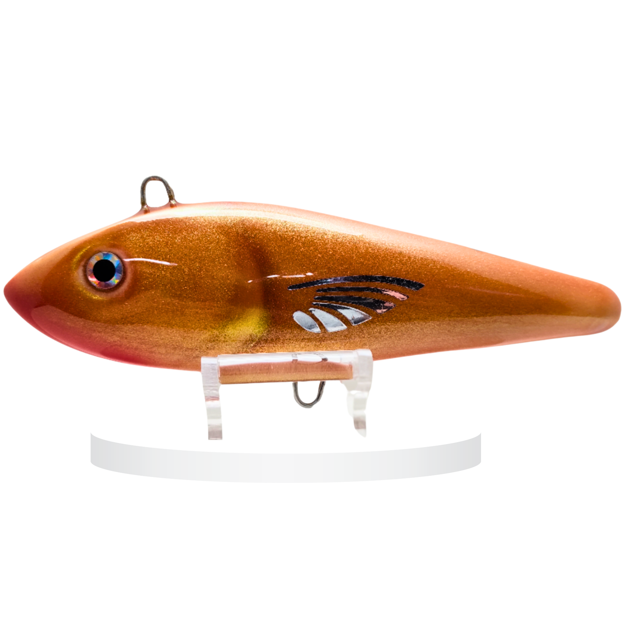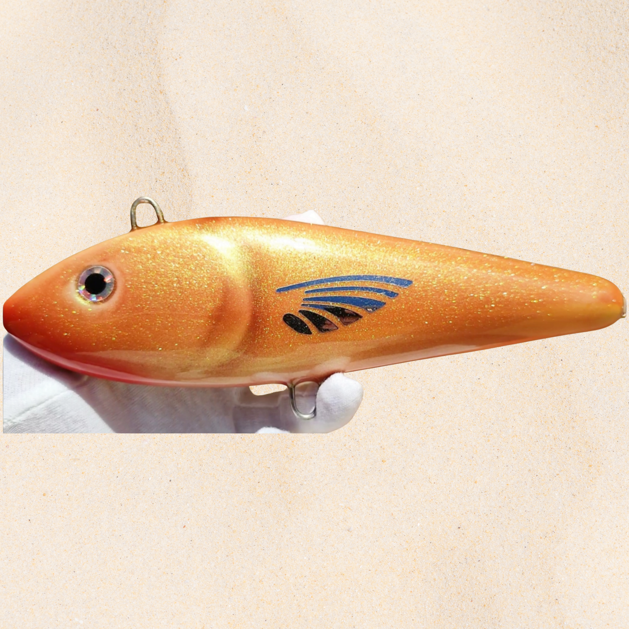 Destaca por su acabado en naranja brillante con reflejos metálicos, que crea destellos muy visibles en el agua. Perfecto para simular especies pelágicas bajo condiciones de alta luminosidad.