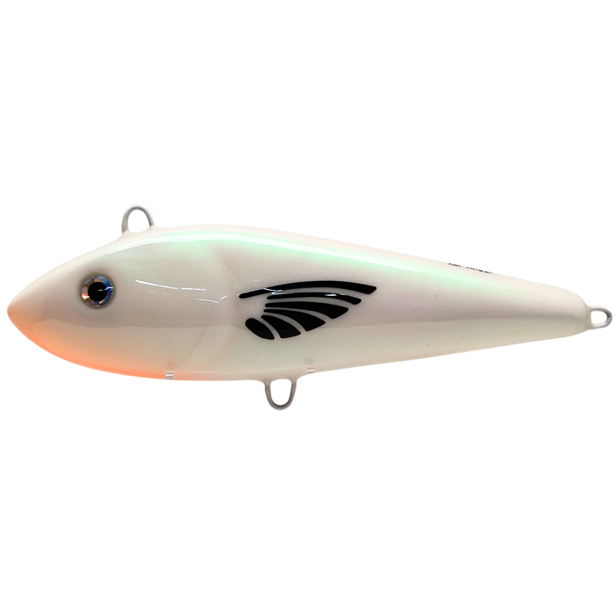 El modelo V07 destaca por su acabado blanco perla con detalles negros, ideal para condiciones de alta luminosidad o aguas claras, donde genera fuertes contrastes visuales para provocar ataques.